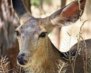 I will admit this is the first time I was more startled by a deer than the deer was by me. Earlier today I heard a noise directly behind me and spun around in surprise to see a deer so close that it was practically invading my personal space. It eyed me nonchalantly, appearing to be slightly amused by my reaction. If another couple of deer showed up I would have tried to remember how Tippi Hedren was first attacked in “The Birds.”