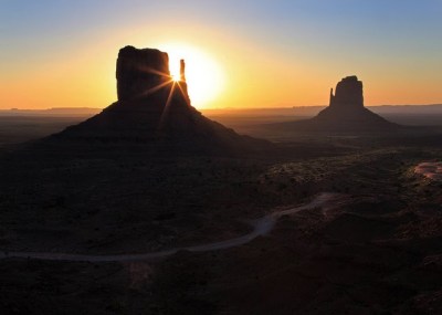 From Zion I drove directly to Monument Valley, a classic western landscape right on Utah’s border with Arizona, and I made it there right in time for sunset. I’d seen lots of photos of Monument Valley but this was my first visit. I assumed the Mittens, the most famous rock formations in the valley, were visible from the highway, but it turns out they’re on Navajo land and you have to pay a $5 fee for access to the area. If the place has to be commercialized, I wish they’d go a little further and pave the miserable dirt road that starts at the visitor center and weaves deeper into the valley. A few of the potholes almost swallowed my entire car and I only drove about a mile before my roughed-up tires insisted that we turn around.