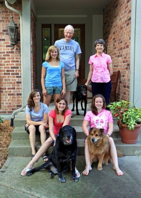 Dad, Mom, my sister Ann, my nieces Kate and Elizabeth, Elizabeth’s friend Lizzie, and the four-legged family members Jack, Bridget, and Sam