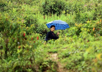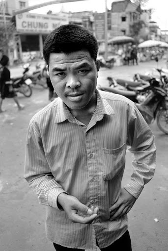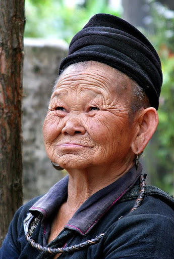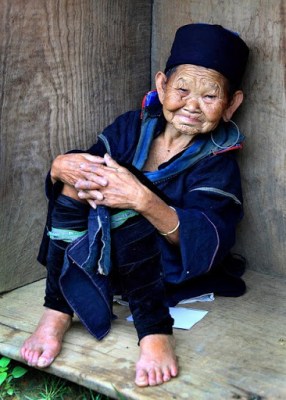 About an hour into our hike Vi stopped me and pointed to a nearby hut.  Sure enough, there she was!  During my first visit to Sapa I photographed an elderly Hmong woman who was so memorable that I brought prints of those photos in case I ran into her again.  Vi had spotted the old woman curled up in some kind of wooden box next to a house by the trail.  I approached her, handed over the photos and asked Vi to tell her they were taken four years ago.  The woman broke out in a big smile but didn’t seem particularly interested in the prints.  I asked if I could take some new photos and she nodded, then when I finished she insisted that I pay her.  The girls felt sorry for the woman and even Vi thought I should give her a little money.  “She really old,” they said.