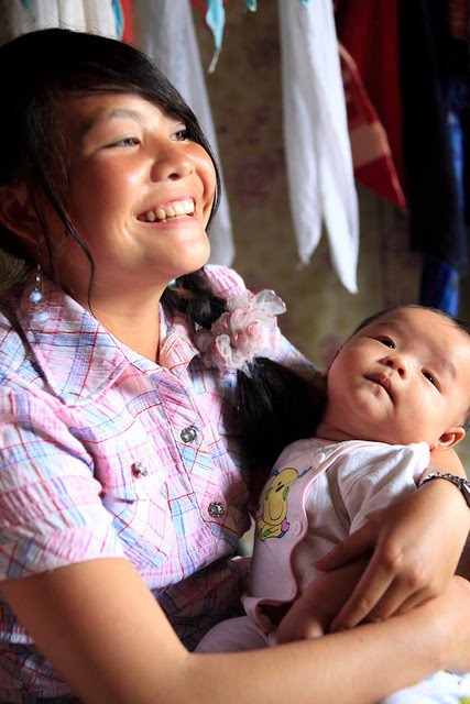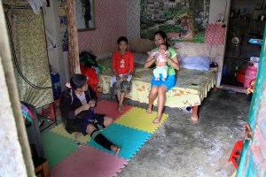 Ge’s room was just two doors down from the room Vi shares with Chau, so Ge gave me a tour of her place, too. It’s basically one big room with a thin partition that divides the main space in the front from a narrow section in the back that has cooking equipment on one side and a toilet on the other. With both My and Little Chu staying in Sapa for a few days, Ge and her husband had a full house.