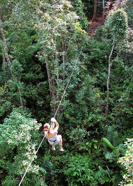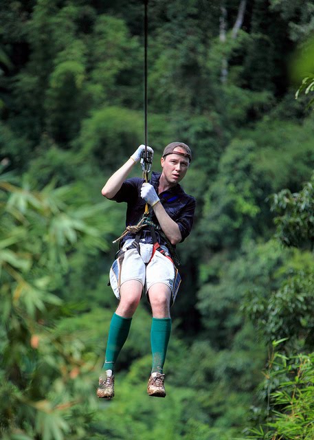 I asked to go first on one of the zip-lines so that I could take photos of the rest of the group. Mark said he’d shoot a video of me zipping away, so I planned to take an impressive-looking running start. Instead I lifted up my feet too early and basically planted my ass in the mud before bouncing into the air. Awesome… Even more awkward than one of my typical wipeouts.