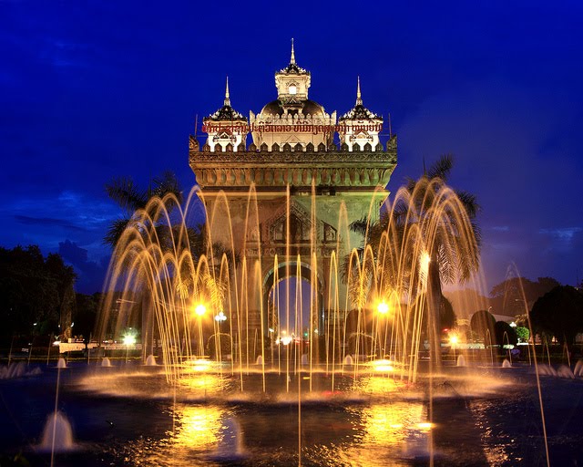 One of my first stops was Patuxai, a monument that provides some insight into Laos’ national psyche. In the 1960s the United States gave Laos a bunch of cement for the construction of a new airport runway. The Laotian government gratefully accepted the gift but promptly ditched the runway plan and instead used the cement to help build a massive arch that memorializes the country’s struggle for independence. Given that Laos won its independence from France, it seems like either irony or parody that Patuxai so strongly resembles Paris’ Arc de Triomphe.