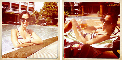 Dragging a little bit from the heat and our three consecutive pre-dawn wake-ups, we left the temples at mid-day and went back to the city for lunch. Happy Hour starts early in Siem Reap and we finished off our share of cheap Angkor drafts before heading to the hotel for a lazy afternoon by the pool.