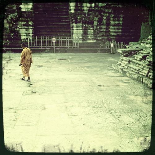 Even better, we stumbled across both Ms right after sunrise. First we ran into a monk who seemed to be involved in some kind of professional photo shoot. I had no qualms about tagging along.