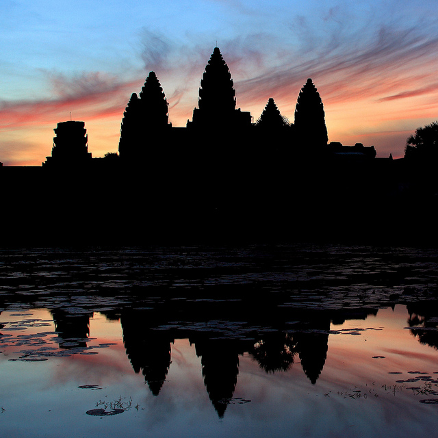 In spite of my relentless teasing, Marie graciously agreed to a third morning of pre-dawn photos at Ankgor Wat. The sky rewarded us with even more color than we had on the first day.