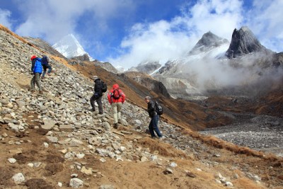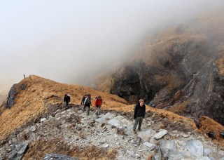 By the time we stopped for lunch we were all struggling. Penny had been crying – not because of her feet, she explained later, but because in the thin air she felt like she was suffocating. Tato seemed to be in worse shape. He couldn’t stay warm. At one point he appeared to check out and wouldn’t respond to us when we asked if he was OK. But hot tea and some shadow-boxing from Elie brought him back around. We all found our second wind and started climbing again.