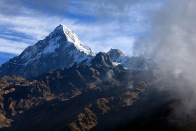 Varaha Shikhar and Annapurna South Near Sunset in B&W