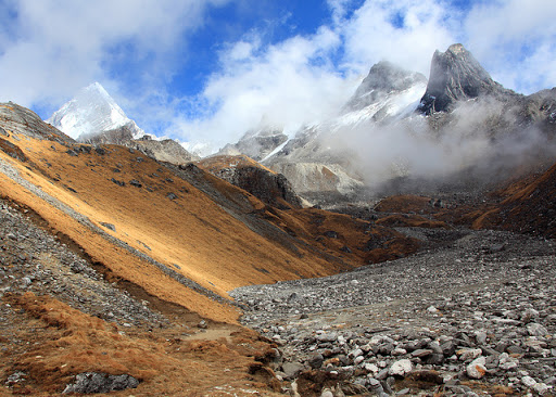 Our hike today would be our most difficult of the trek, by far. We would gain about 1,400 meters in elevation as we climbed to a lake that sits at an altitude above 5,000 meters, far higher than I’d ever been before. And then we’d hike all the way back down. Bharat said it would probably take us about nine hours. We started, as usual, under sunny skies, and the first few hours passed quickly.