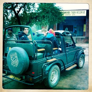 And sure enough, our jeep was waiting for us out front. Marie and I tried to reconcile this fact with what we’d heard earlier from the safari operator. “India,” we concluded. Thirty minutes later we were at the entrance to the park. Cold and desperately missing the fleece jacket I’d accidentally left in a Mumbai cab, I bought an embarrassingly touristy jacket from one of the vendors who swarmed us when we stopped at the entry gate. Marie sarcastically admired the orange tiger paw sewn into the back.