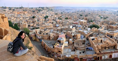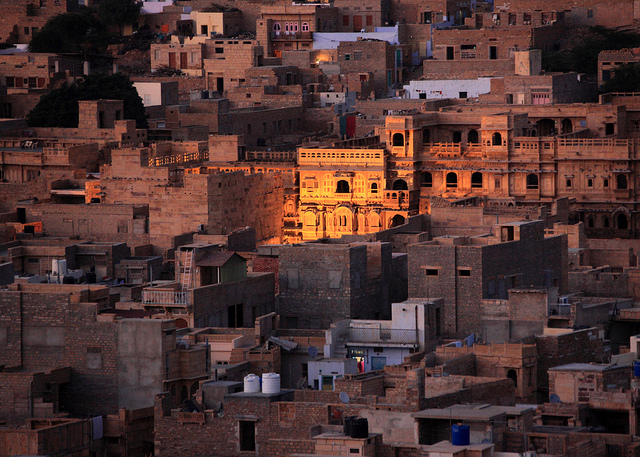 Our guidebook said Jaisalmer was built around a thousand-year-old golden-colored fort. Marie and I had already seen a lot of forts in India and didn’t expect much. But the city charmed us immediately. We were biased, I’m sure, by the perfect weather – cloudless sky, warm in the sun but pleasantly cool in the shade, a slight breeze. The people we met were noticeably friendlier than in the other Indian cities we’d visited. The streets weren’t particularly crowded, and few drivers used their horn.
