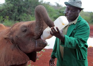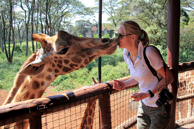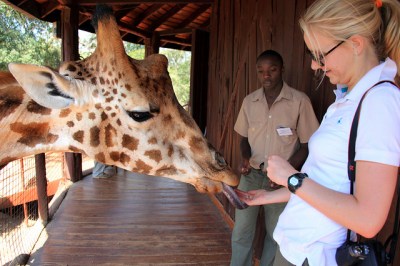 The next day Zannah and I hired a taxi driver to take us to three of Nairobi’s most popular attractions: Nairobi National Park, the David Sheldrick Wildlife Trust, and the Giraffe Centre. Nairobi National Park, our first stop, is a 29,000-acre wildlife reserve bordering the city. The park is too small to support elephants, but all the rest of the famous African “Big Five” are there – lions, leopards, rhinos, and African buffalo, along with zebras, giraffe, impala, hyena, and a long list others. We didn’t see lions or leopards, but we did spot a group of Black Rhinoceros, so endangered that only a few thousand are thought to be left in the world.