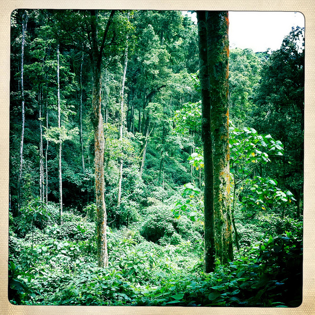 If we weren’t slogging through the mud we were trying our best to avoid stumbling over an unstable lattice of roots and plants that had been mashed down on the trail. Without my walking stick I would have been on my butt more than my feet. The humidity drained us. Whenever the sun broke through the clouds the jungle began to steam. Ants burrowed under our clothes and bit us.