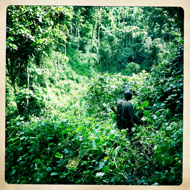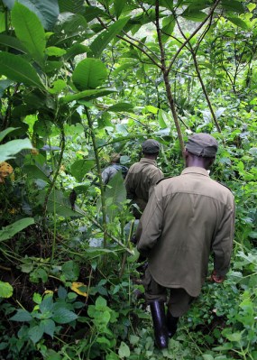 At the top of a hill Abrahim pointed to a steep downward slope in front of us. “The gorillas are there,” he said.