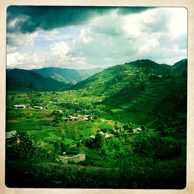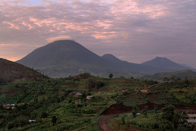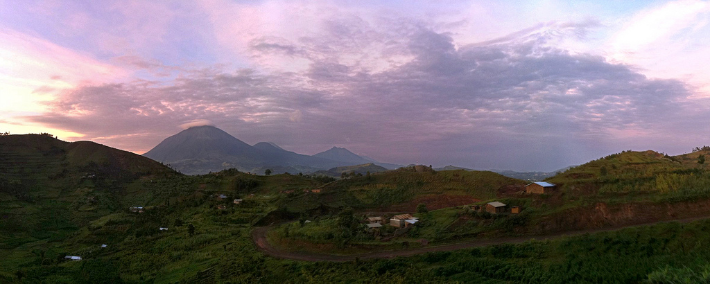 The next morning Andrew and I left Kisoro before dawn. Clouds had blocked my view of the Virunga volcanoes when we first arrived, but that morning the massive volcanic cones were clearly visible. As we drove up through the hills surrounding the town I had a chance to photograph that amazing landscape in the ever-changing morning light.