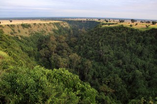 The Kyambura Gorge in Queen Elizabeth National Park is one of several places in Uganda where tourists can see chimpanzees in the wild. Andrew and I had stopped there the previous afternoon to check on the status of my chimp tracking permit. Nobody in the tracking office seemed to know whether I had a permit for the next morning or not, so they told me to just show up and hope there would be room in the group scheduled to leave at 8:30am.