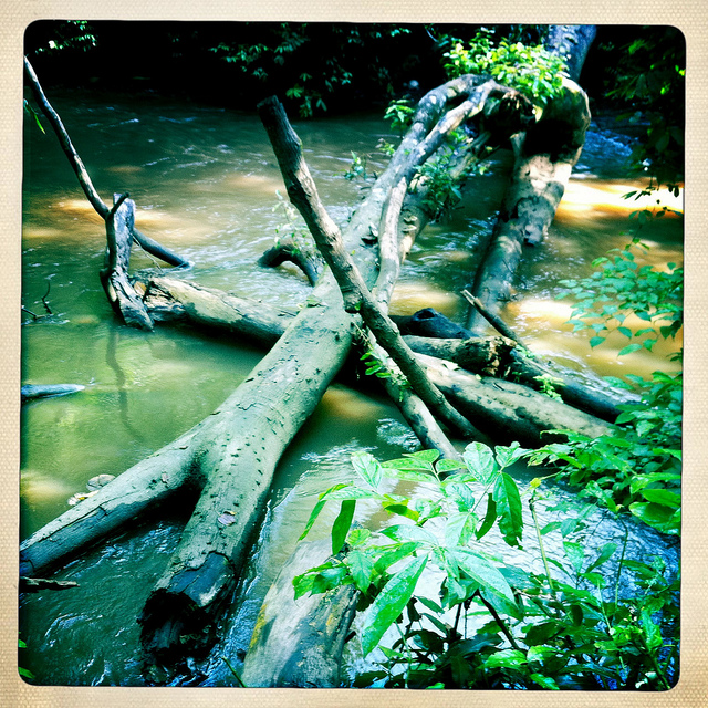 “Right there,” answered Bernard, pointing to a tree that had fallen across the river. I have to give the Italians credit – they didn’t balk for a second. Our whole group made the crossing, despite the fact that it would have been very easy (at least for me) to make a small slip and drop into the water.