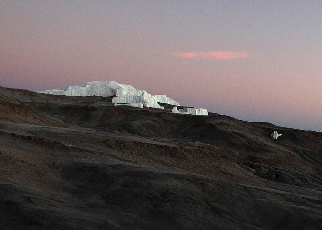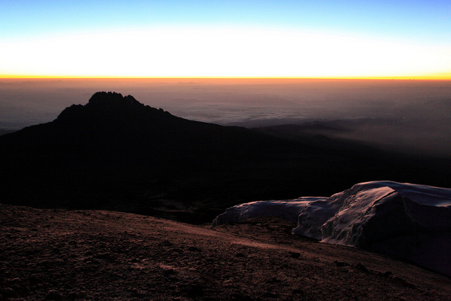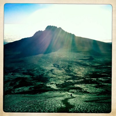 At dawn on the first morning of my Kilimanjaro trek I stood on the roof of my hotel and watched the first hint of pale orange sunlight reflect off the snow surrounding Uhuru Peak.  I couldn’t see them, but I knew long lines of frozen, weary hikers were at that moment slowly working their way towards the summit.  I tried to imagine what it would feel like to stand there at the top, the roof of the entire continent, with a hundred miles of raw African landscape unfolding in every direction.