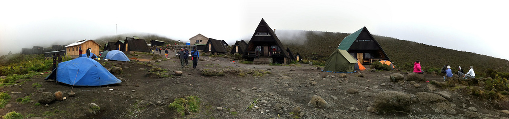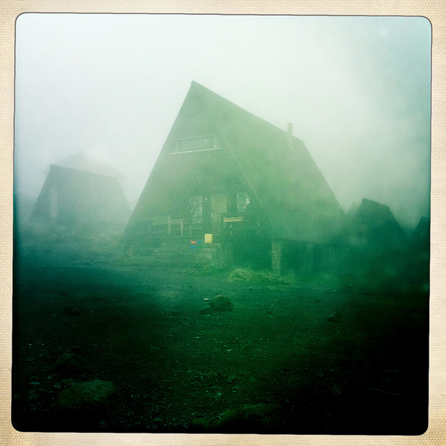 We found Horombo Hut hidden in a thick fog.  I heard the camp’s activity before I could see any of the A-frame huts through the cold, dirty-white mist.