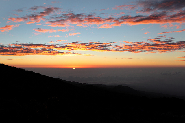 Up early, camera in hand, I watched the sun rise over the Tanzanian plains east and south of Kilimanjaro.  A few rows of puffy morning clouds raced through a complete tour of the color spectrum, beginning with icy purple-blue and peaking with fiery red.