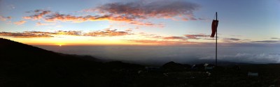 And so I realized how stupid it had been to rush.  I asked Happy God to slow down, but it didn’t make much of a difference.  Just before 5am we crossed paths with the only group in front of us – two Italians with a guide – as they began their return from the summit.  A few minutes later Uhuru Peak’s wooden marker sign appeared in the light of my headlamp.  We were alone at the top.