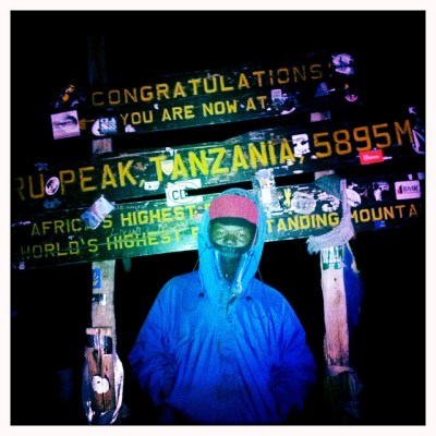 I felt relieved, disappointed, and exhilarated.  The highest point in all of Africa!  The moon had already set, leaving only starlight to reveal the rough contours of the horizon.  Taking a few iPhone photos in front of the marker sign left my hands frozen numb.  “Let’s go!” said Happy God.  Frost clung to his eyelashes.