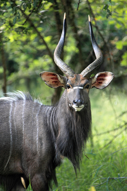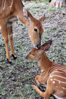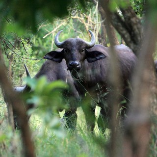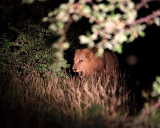 Instead of returning to the lodge at sunset we stayed out for another two hours and used a searchlight to continue looking for animals after dark. Considering that so many animals become more active at night, I wondered why we’d never done that on any of my safaris in East Africa. At about 7pm another guide radioed that he’d seen two ngalas on the move, and Bongani drove to a spot on the road that might cross their path. The guide who’d reported the lions pulled up in front of us and we all sat in silence, scanning the bushes with our searchlights. After a few minutes two young male lions emerged from the vegetation and crossed the road between the headlights of our jeeps. It was too dark to take clear photos, but it was really cool to see lions on the prowl at night.