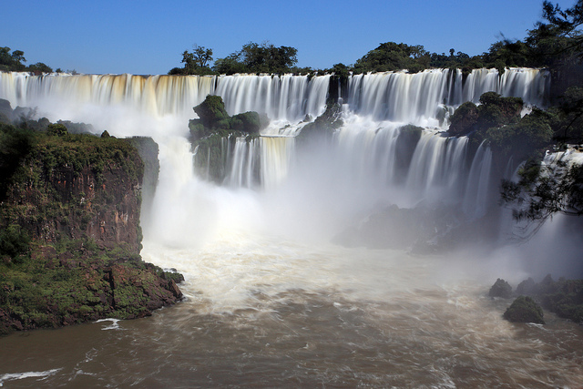 Puerto Iguazú is a small city located at Argentina’s border with Brazil and Paraguay, an area known as the “Triple Frontier.” Eleven miles south of the city, marking the border between Argentina and Brazil, the Iguazu River widens considerably before spilling over a long line of rocky cliffs, creating a winding curtain of cataracts that many people believe is the most spectacular waterfall in the world.