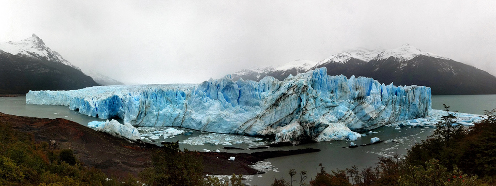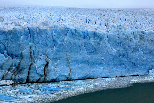 A short bus ride took me from El Chaltén to El Calafate, a relatively large town at the southern end of Parque Nacional Los Glaciares. El Calafate’s primary tourist attraction is the Perito Moreno Glacier, a river of blue ice that empties into Lago Argentina. Perito Moreno is one of many glaciers in the immense Southern Patagonian Ice Field, exceeded in size only by Antarctica and Greenland.