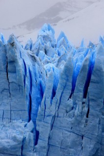 Rain or shine, Perito Moreno is extraordinary. Even in the absence of direct sunlight the ice glowed with an almost neon blue. In some places the vertical face of the glacier’s edge towered more than 200 feet above the lake.
