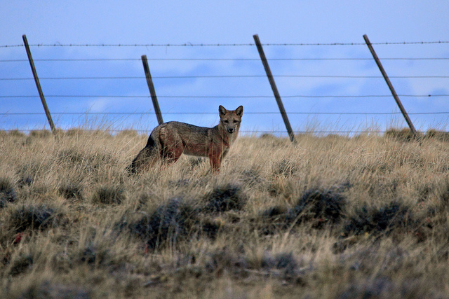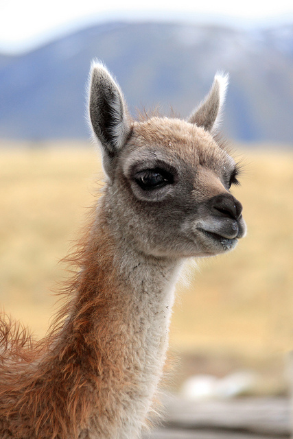 On my second morning in town I rode to Perito Moreno with a small group of tourists. We took a little-used gravel road to increase our chances of seeing wildlife, and just after sunrise we spotted a red fox running along the fence line. A little later we stopped at a sheep farm and met Lola, a guanaco orphan the owners rescued and raised. Lola, still very young, had become best friends with one of the goats on the farm, and the two were inseparable. When I kneeled down next to Lola she pressed the side of her head against my neck.