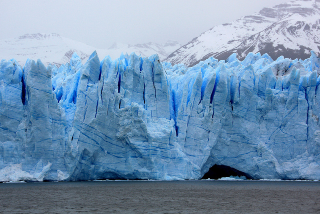 Unlike most of the world’s glaciers, Perito Moreno is not retreating. Every few years it even advances all the way across the lake until it reaches the rocky shore beneath the boardwalks. But Lago Argentina doesn’t appreciate being split in half. Given enough time, water will cut through anything, and the lake inevitably bores a tunnel through the glacier. Photographers then wait weeks for the massive arch of blue ice to fall, and postcards showing examples of the dramatic collapses can be found in just about every souvenir store in El Calafate.