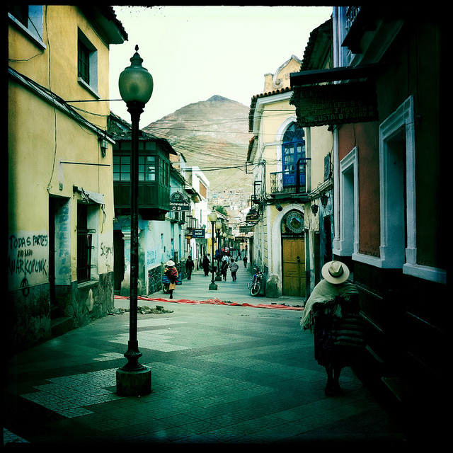 At 4,070 meters (13,353 feet), Potosí claims to be the highest city in the world.  Hundreds of years ago it was also one of the largest and wealthiest, thanks to the discovery of the New World’s most extensive deposits of silver in a nearby mountain, Cerro Rico (Rich Hill), in the 1540s.  Cerro Rico’s silver began to dry up in the 1800s, followed by a corresponding drop in Potosí’s population, wealth, and global importance.
