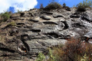 Looking Up at the Lower Wall of Dinosaur Tracks