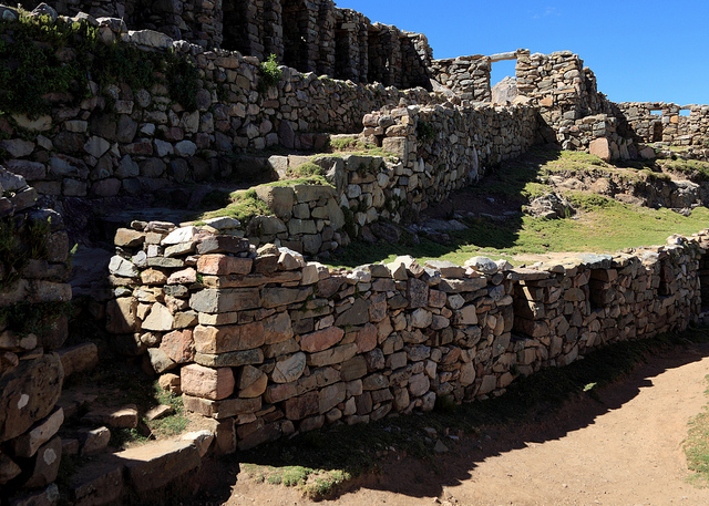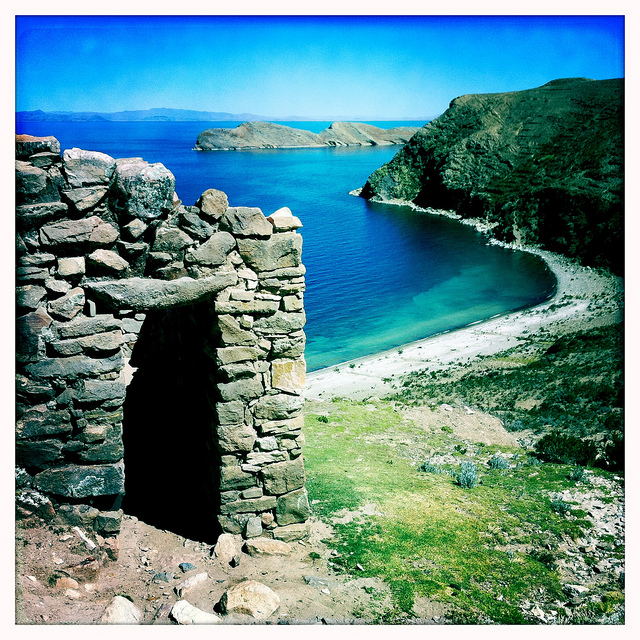 For less than $4 I booked a boat trip to Isla del Sol that left first thing in the morning and returned to Copacabana in the late afternoon.  Our slow-moving motorboat took almost two hours to reach the small Isla del Sol town of Cha’llapampa, and from there I hiked south along the spine of the island, passing several Inca ruins on my way to the village of Yumani, our pick-up point.