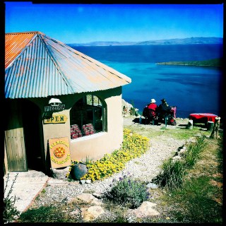 Traveling in Bolivia is half as expensive as Argentina or Chile.  The bus ride from La Paz to Copacabana cost $5.  In Copacabana I paid $15 for a relatively nice, clean hotel room with wi-fi, cable TV, and an excellent view of Lake Titicaca.  For lunch I stopped at a food tent by the side of the lake and had a plate of freshly-caught trout for $3.