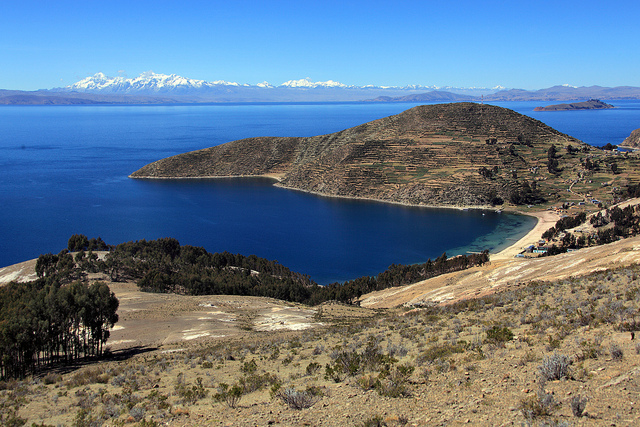 Titicaca is the world’s largest high-altitude lake.  It covers 8,400 square kilometers at an elevation of 3,808 meters (12,493 feet) above sea level.  The sapphire-blue lake was sacred to the Incas.  According to Incan mythology, Isla del Sol – an island just north of Copacabana – is the birthplace of the sun.