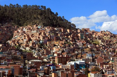 Sleep deprivation didn’t prevent me from appreciating the striking beauty of La Paz, at 3,660 meters (12,008 feet) the world’s highest capital city.  Steep mountains, some snow-capped, jutted up on all sides, and brick houses climbed the nearly-vertical slopes immediately surrounding the city.  The streets were already bustling with sidewalk vendors, businessmen in suits, honking cars, and indigenous women wearing black bowler hats.