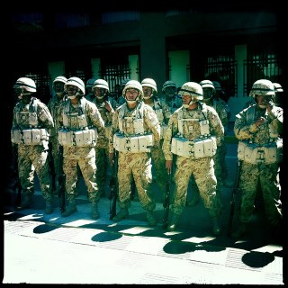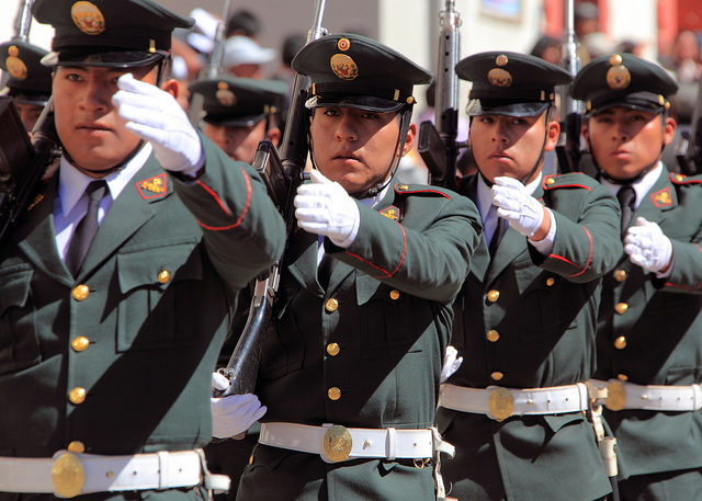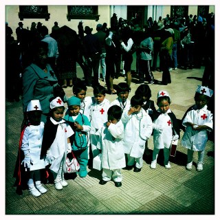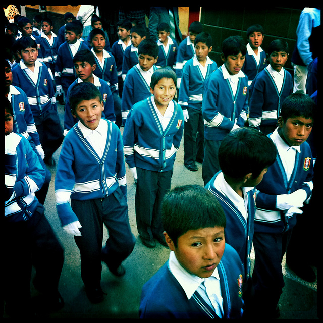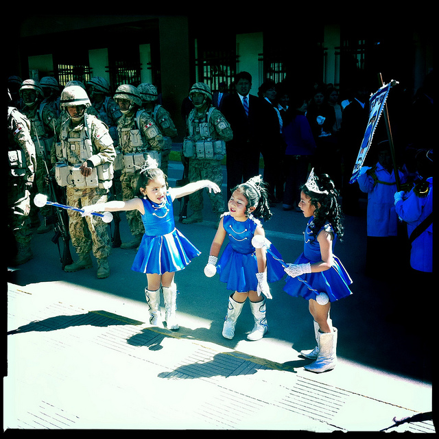 At mid-day I stumbled onto the beginning of what turned out to be a large parade. There were marching bands, kids dressed up in all kinds of costumes, groups of businesspeople in suits, and contingents from the Peruvian military. I took advantage of the distraction caused by the parade to sneak in some street portraits.