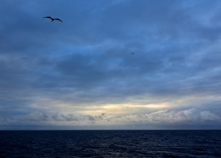 I woke up well before sunrise, too excited to sleep. Armed with my camera and iPod I climbed to the small observation deck at the top of the boat. The dim outline of North Seymour was just becoming visible on the horizon. Frigatebirds soared overhead, still only silhouettes against the blue-black sky. What I saw and heard and felt, but most of all the distinctive smell of the Galapagos – sea air, volcanic earth, bird feathers, prickly pear cactus and mangrove trees – triggered a rush of memories from my previous visits, almost every morning spent identically, alone at the top of the boat in the endless hour before dawn.