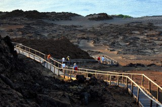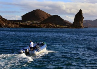 In the late afternoon we rode the (recently-cleaned) panga back to Bartolome and climbed up a hill for the classic view of Pinnacle Rock.