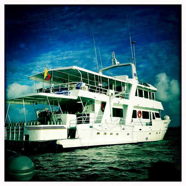 We hardly had time to shake hands before Matti yelled “Shark!” and pointed to the water near the boat. Two shark-like fins were in fact sticking out of the water, but it was a manta ray – the first I’d ever seen. It glided through the water in slow circles before fading from view. I guessed that if my dad had been with us he would have wondered aloud how much Galapagos National Park had to pay the manta ray to welcome us to the islands.
