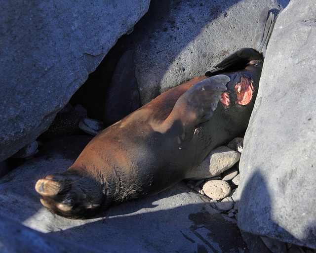 The next morning I wasn’t the only one awake early. We left at 6:15am for an early snorkeling outing to Devil’s Crown, a ring of volcanic rocks just off the coast of Floreana. There weren’t any sea lions this time, but we did spot several white-tipped reef sharks and a couple of sea turtles.