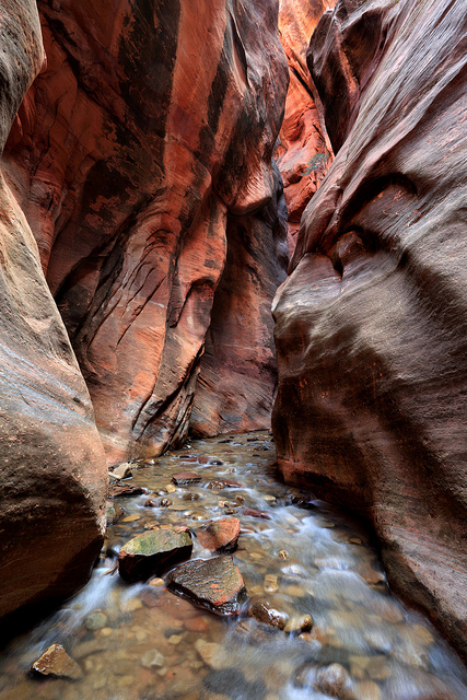 Seeking sunnier skies, I drove back west to Kanarra Creek, a slot canyon just outside of Zion National Park. Photos really can’t capture the experience of hiking through a slot canyon. The towering rock walls, sculpted and smooth from countless years of erosion, glow orange, yellow and red from reflected sunlight, and in many places the walls are so narrow that you have to hike in creek itself, your feet numb from the ice-cold water. Kanarra Creek was truly amazing, a smaller but 98%-less-crowded version of Zion’s famous Narrows.