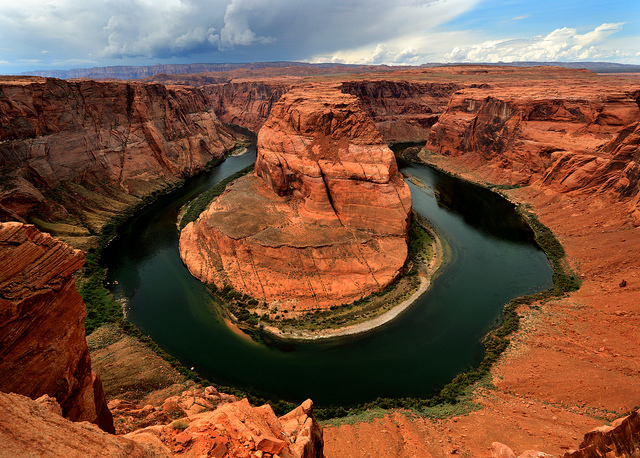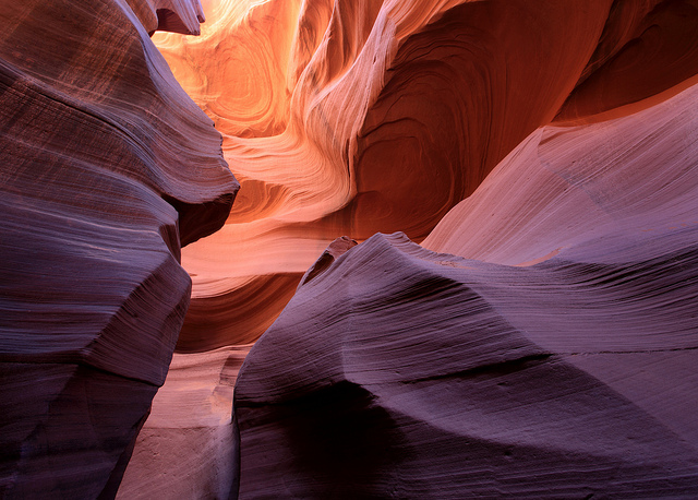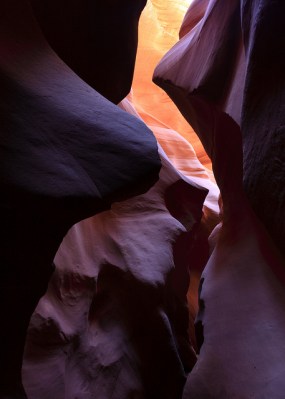 I worked off my Wave frustration with visits to Horseshoe Bend and Lower Antelope Canyon. Horseshoe Bend is a dramatic curve in the Colorado River, and Antelope Canyon is a frequently-photographed slot canyon. Both are just outside of Page, Arizona. Scattered thunderstorms were passing through the area, and a large part of Lower Antelope Canyon had been closed by flash floods. I hoped to visit again the next day, but nonstop rain (and, at one point, marble-sized hail) made for a complete washout.