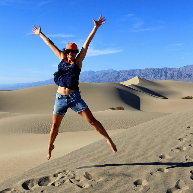 Marie Jumping on Death Valley Sand Dunes