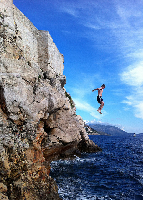 Rob Jumping from Dubrovnik Rocks (photo by Marie)