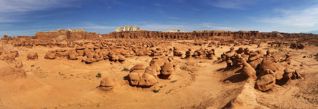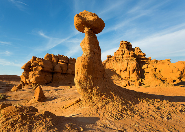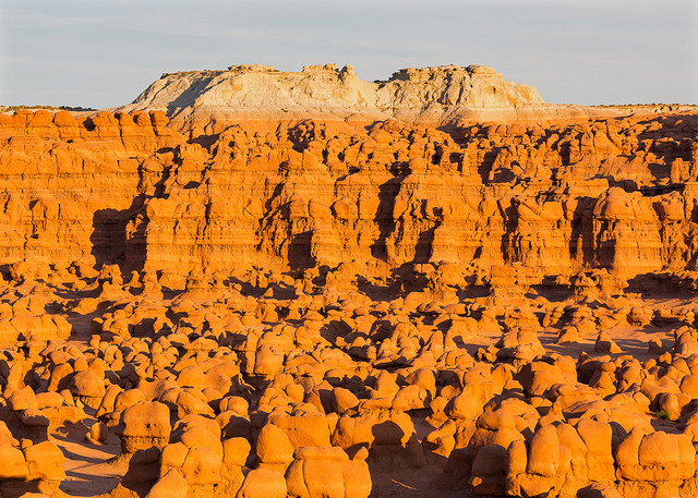 My final destination for the day was Goblin Valley State Park, where I‘d reserved a campsite. I’d never been to the park before and was excited to see it. While taking photos before sunset, however, I realized I wasn’t sure how to do justice to the scope of the Valley of the Goblins. Unique, quirky rock formations stretched across the entire horizon, and the hoodoos are so uniform in color that my attempts to capture the full sweep of the place fell flat.