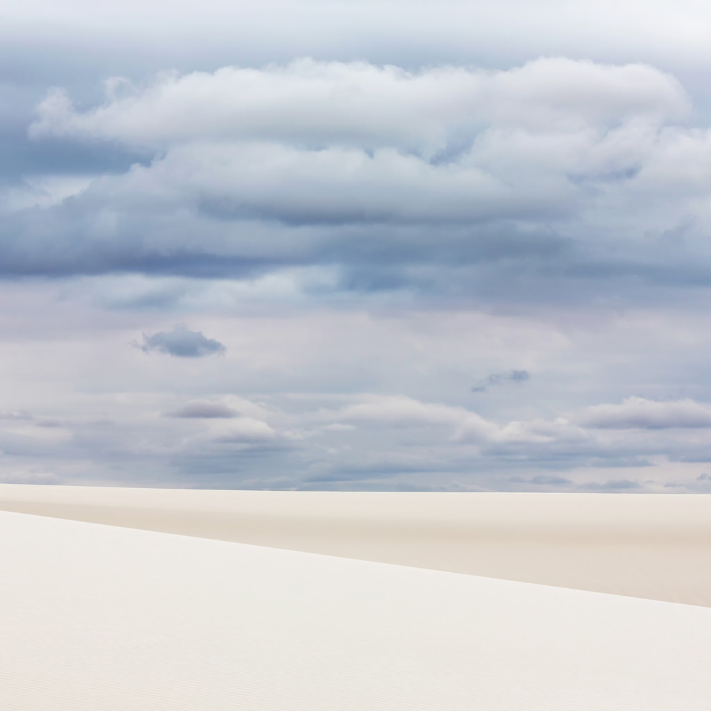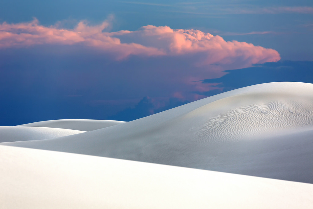 I may have been even more excited to visit White Sands than I’d been to see the Albuquerque Balloon Fiesta. I love photographing sand dunes, and the dune field at White Sands National Monument is unique. Ordinary dunes are composed of tiny grains of quartz, but White Sands is gypsum-based, which makes it white. It’s the largest white dune field on the planet, by far.