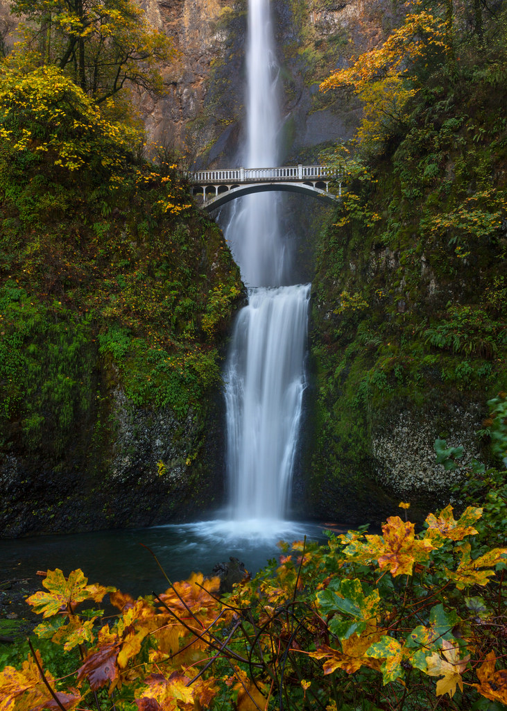 My timing wasn’t ideal. The waterfalls of the Columbia River Gorge are particularly photogenic in the spring, when the water levels are higher and the green of the surrounding vegetation is peaking. But the fall colors have their own appeal, even in the Pacific Northwest. And it was the perfect time of year for a quick stop I planned to make at the Japanese Gardens in Portland’s Washington Park. One of the highlights of the Gardens is an incredible Japanese maple tree with leaves that can turn bright red in the fall.